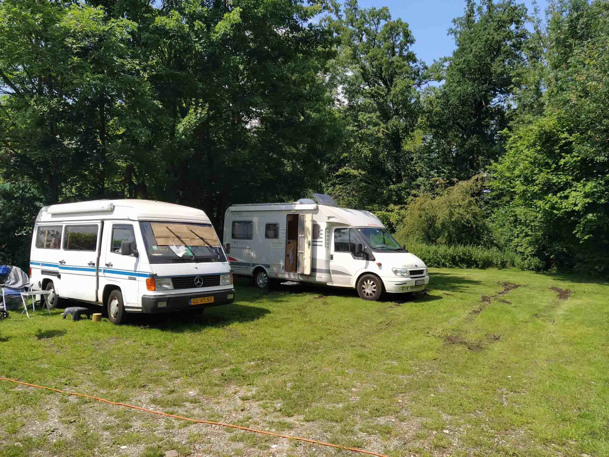 Es ist schon ein merkwürdiges Gefühl, wenn man sich seines Autos nicht sicher sein kann. Wir gingen noch einmal spazieren, frühstückten in Ruhe und machten uns dann abfahrbereit. Dann kam der Moment der Wahrheit und wir versuchten, den Motor zu starten, der natürlich wieder problemlos ansprang. Diesmal gingen wir während der Fahrt kein Risiko ein und ließen den Motor bei zwei kurzen Stopps einfach laufen. Nach insgesamt 4 Stunden Fahrt kamen wir kurz nach 14 Uhr auf dem Wohnmobilstellplatz von Darfeld an. Der kleine Grasplatz war bereits ziemlich voll und aus dem einzig halbwegs freien Platz kamen tiefe Spuren. Dort hatte sich vermutlich der letzte Camper heute morgen fast festgefahren. Wir stellten uns ganz an den Rand der feuchten Fläche und stellten zufrieden fest, dass die Räder kein bisschen eingesunken sind. Da es heute und in der Nacht auch nicht mehr regnen sollte fühlten wir uns relativ sicher. Auf einem Spaziergang erkundeten wir dann die nähere Umgebung bevor wir uns bei geöffneter Tür gemütlich machten und Berta ein bisschen schlafen konnte.