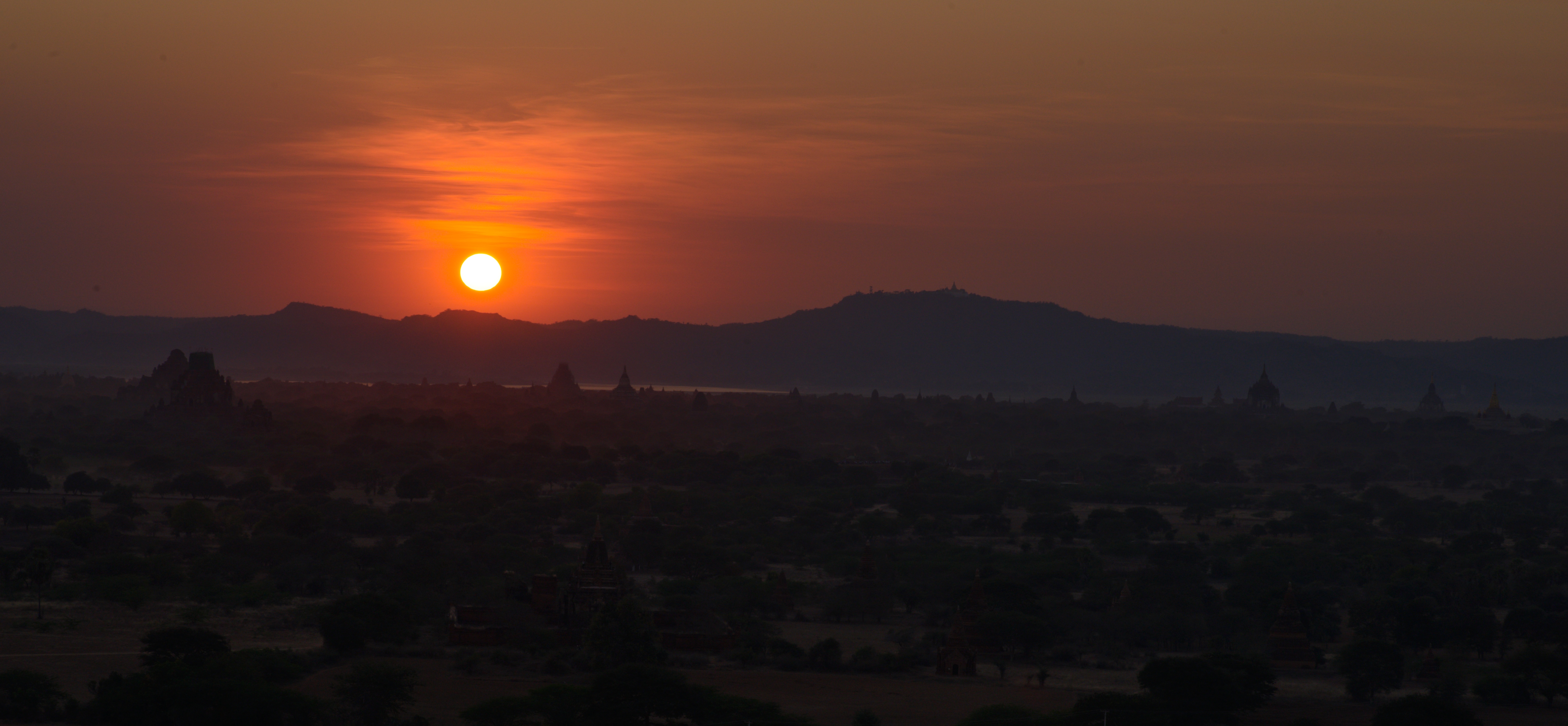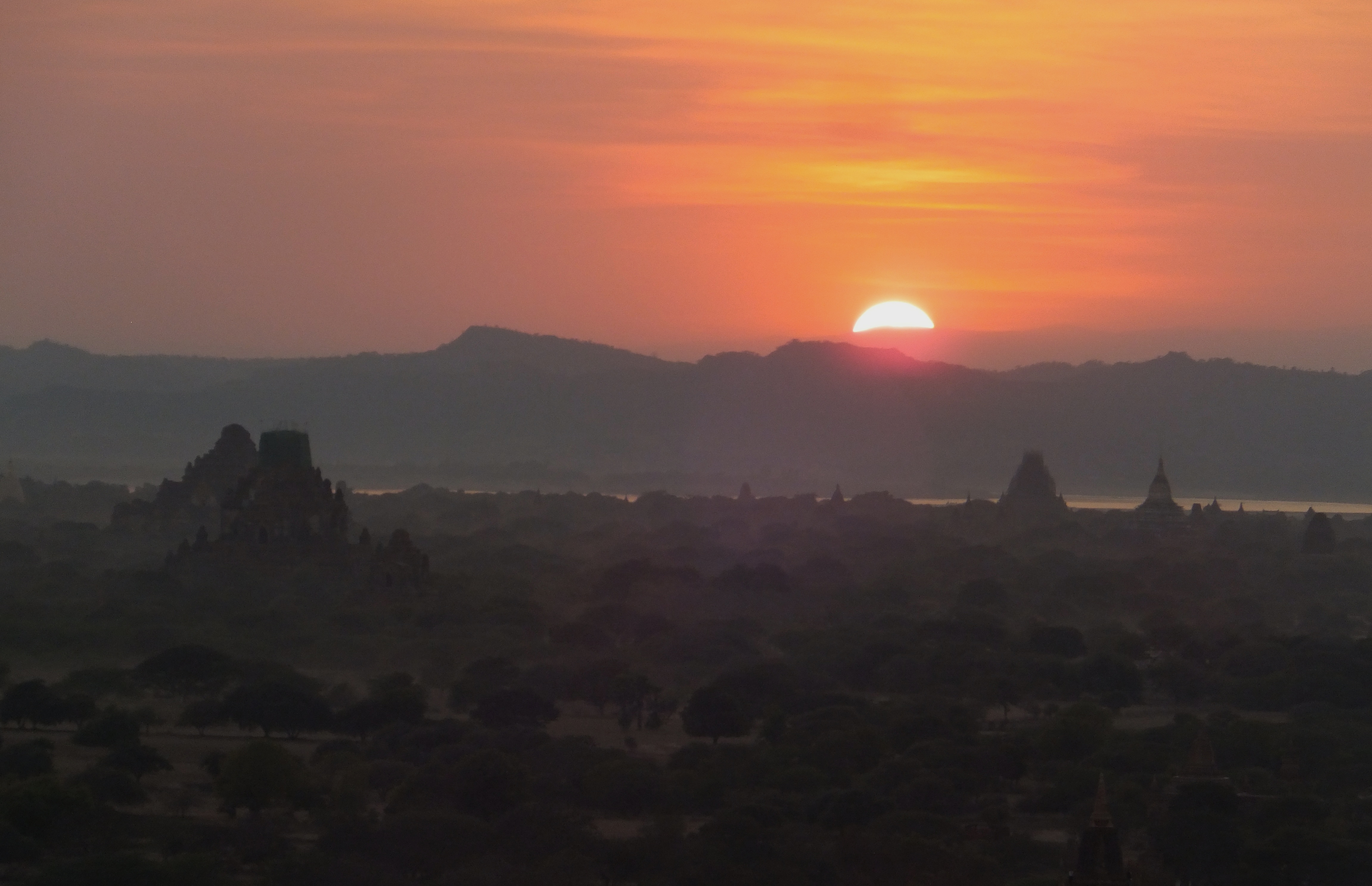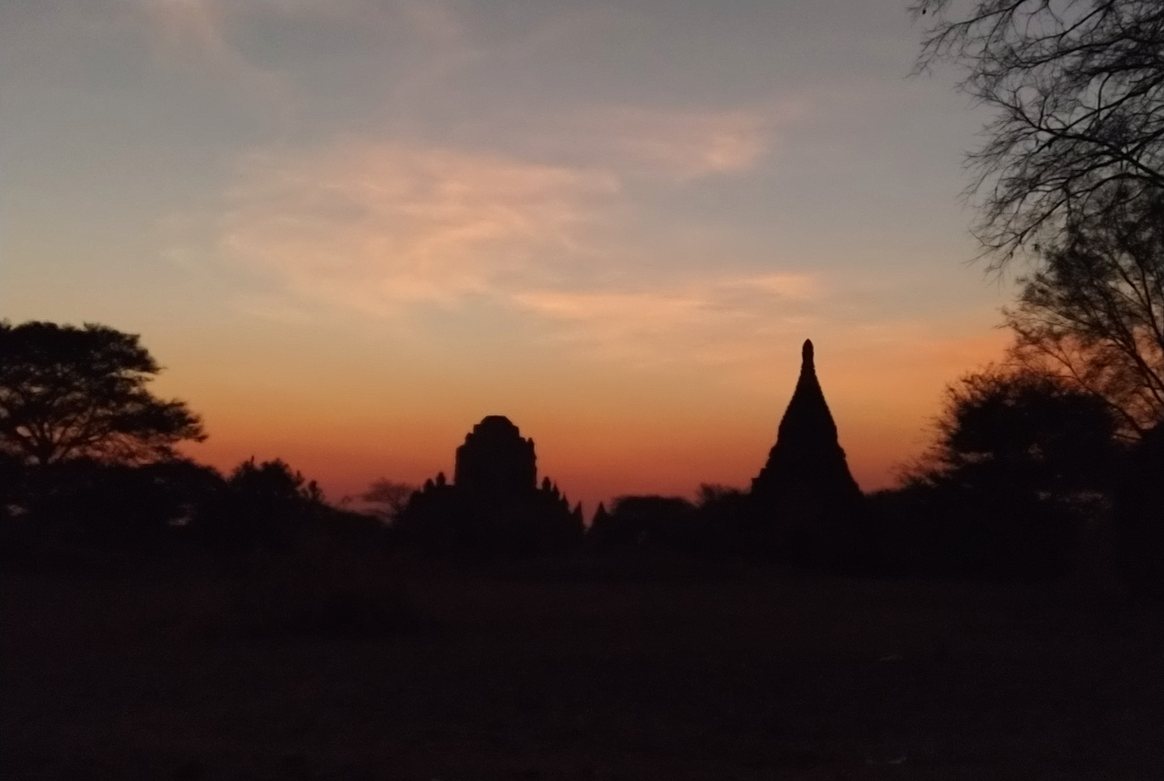 Das gestrige E-Bike fahren hat uns so viel Spaß gemacht, dass wir das heute noch einmal wiederholen mussten. Es war allerdings schon früher Nachmittag, bis wir loskamen. Wir fuhren zum nahegelegenen Watch-Tower, einem ca. 60 m hohen Turm, von dem wir einen ganz tollen Blick über das Pagodenfeld von Bagan bekamen. Die Aussicht war der aus dem Ballon nicht unähnlich aber natürlich ziemlich stationär. Die Tickets für den Turm waren bei unserer Ballontour bereits dabei. Verwunderlich, dass hierfür keine Werbung gemacht wurde. Auch den Sonnenuntergang genossen wir dort oben, bei einem leckeren Cocktail versteht sich. Nachdem es dunkel geworden war fuhren wir zum Bagan Palace, wo es jeden Abend eine Aufführung geben sollte. Die fand auch statt und zwar fast exklusiv für uns. Außer uns waren noch zwei weitere Paare im Publikum. In einer kleinen Pause wurden wir zusätzlich mit Wasser und Chips versorgt. Die Aufführung war sehr gut und wir haben die tollen Kleider und Tänze sehr genossen. Auch diese Tickets waren im Ballonflug enthalten und wir hätten uns doch etwas mehr Werbung und damit mehr Zuschauer, vor allem im Interesse der vielen Darsteller gewünscht. Gegen 21:00 Uhr waren wir wieder zurück, wo der Motorradverleiher wie abgesprochen auf uns wartete. Normalerweise schließt er seinen Laden bereits um 19:00 Uhr. Unser Stammlokal hatte bereits geschlossen und so mussten wir mit einem anderen Restaurant vorlieb nehmen. Geschmeckt hat es trotzdem.