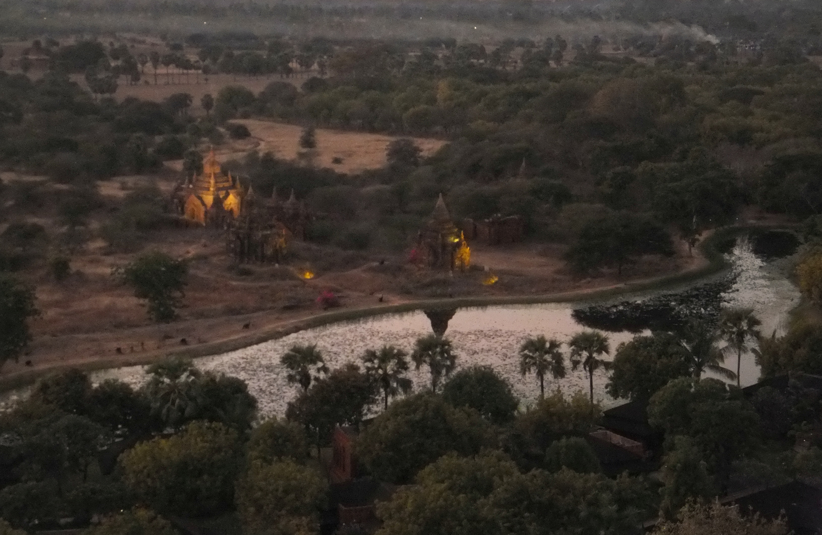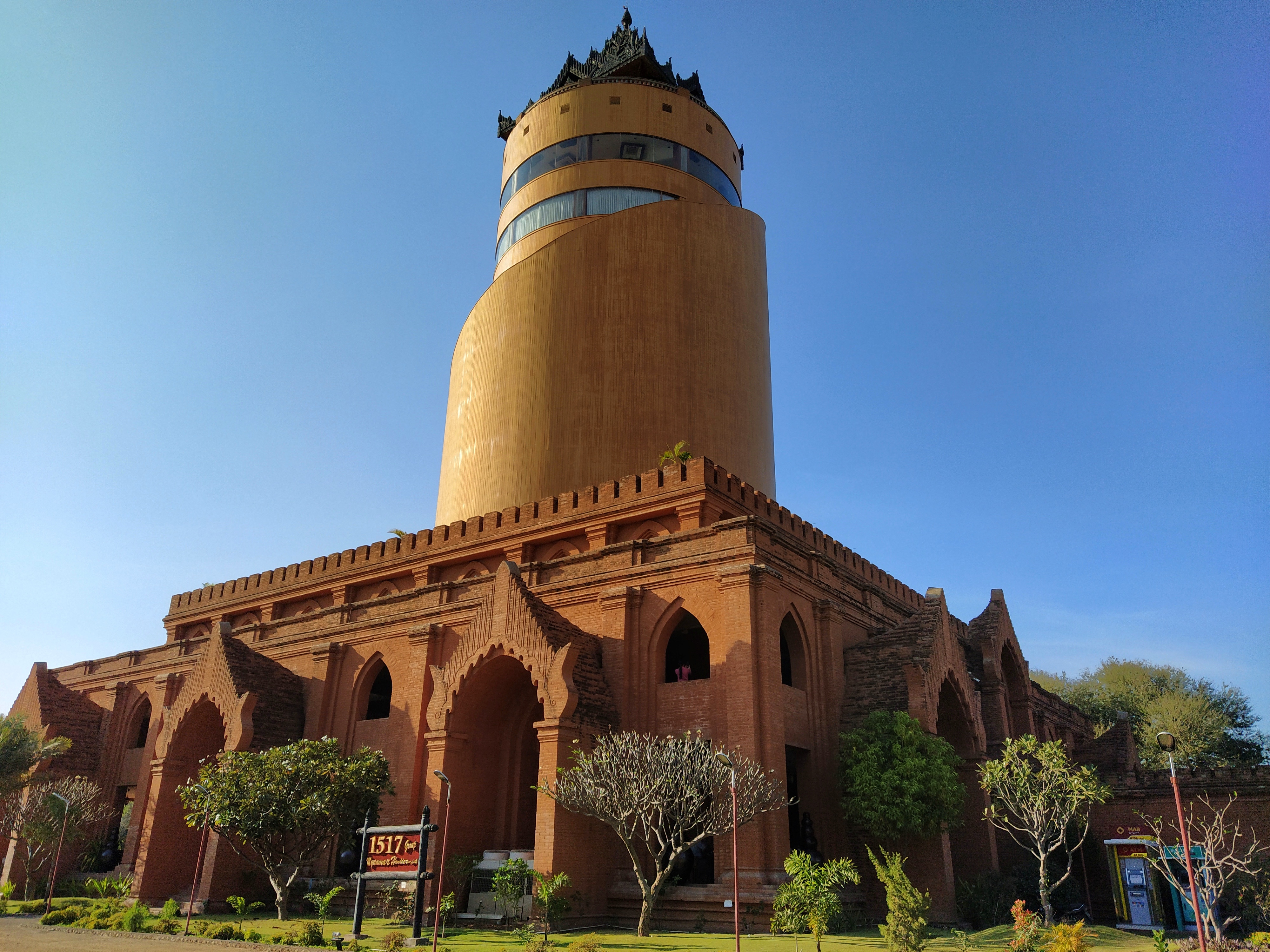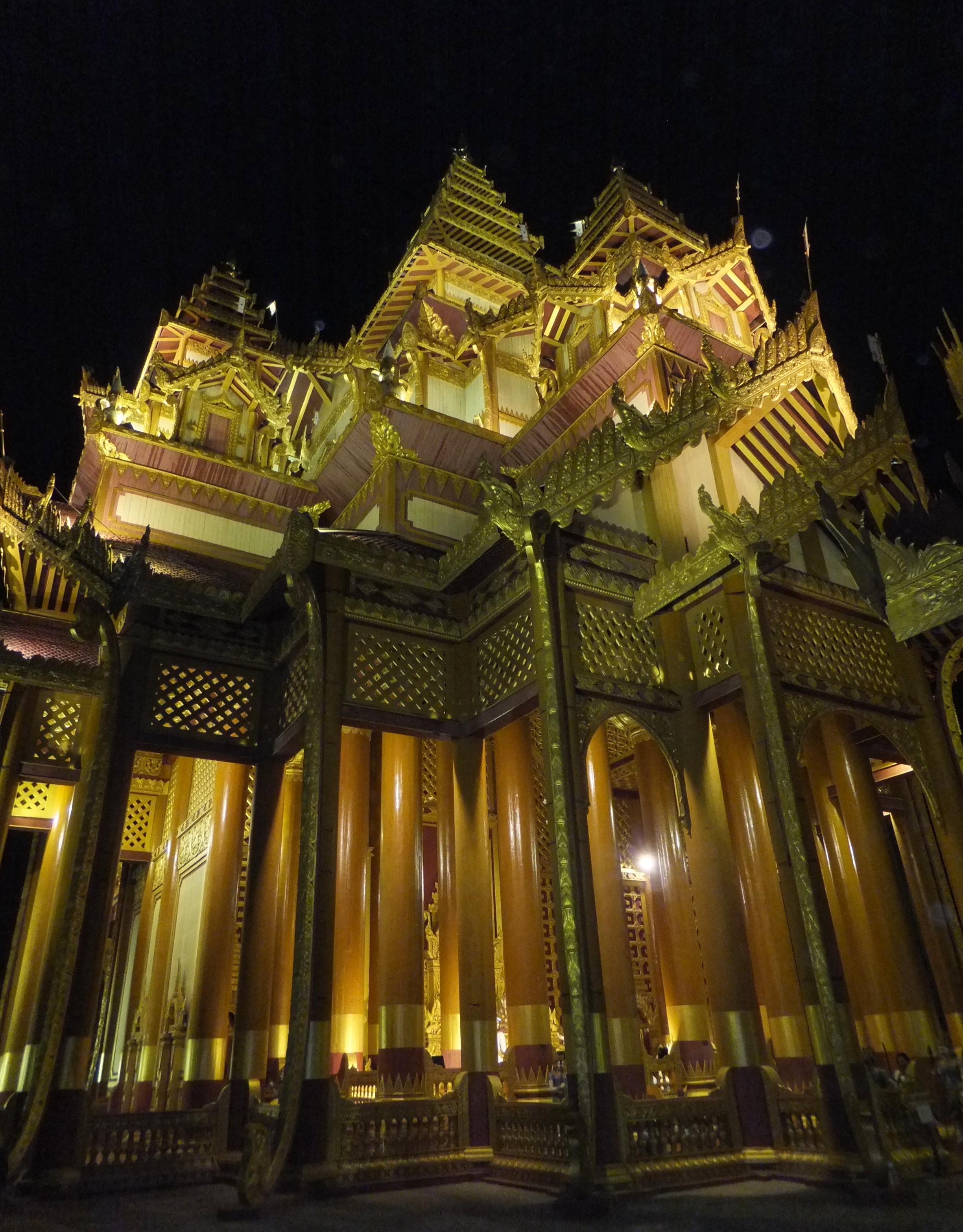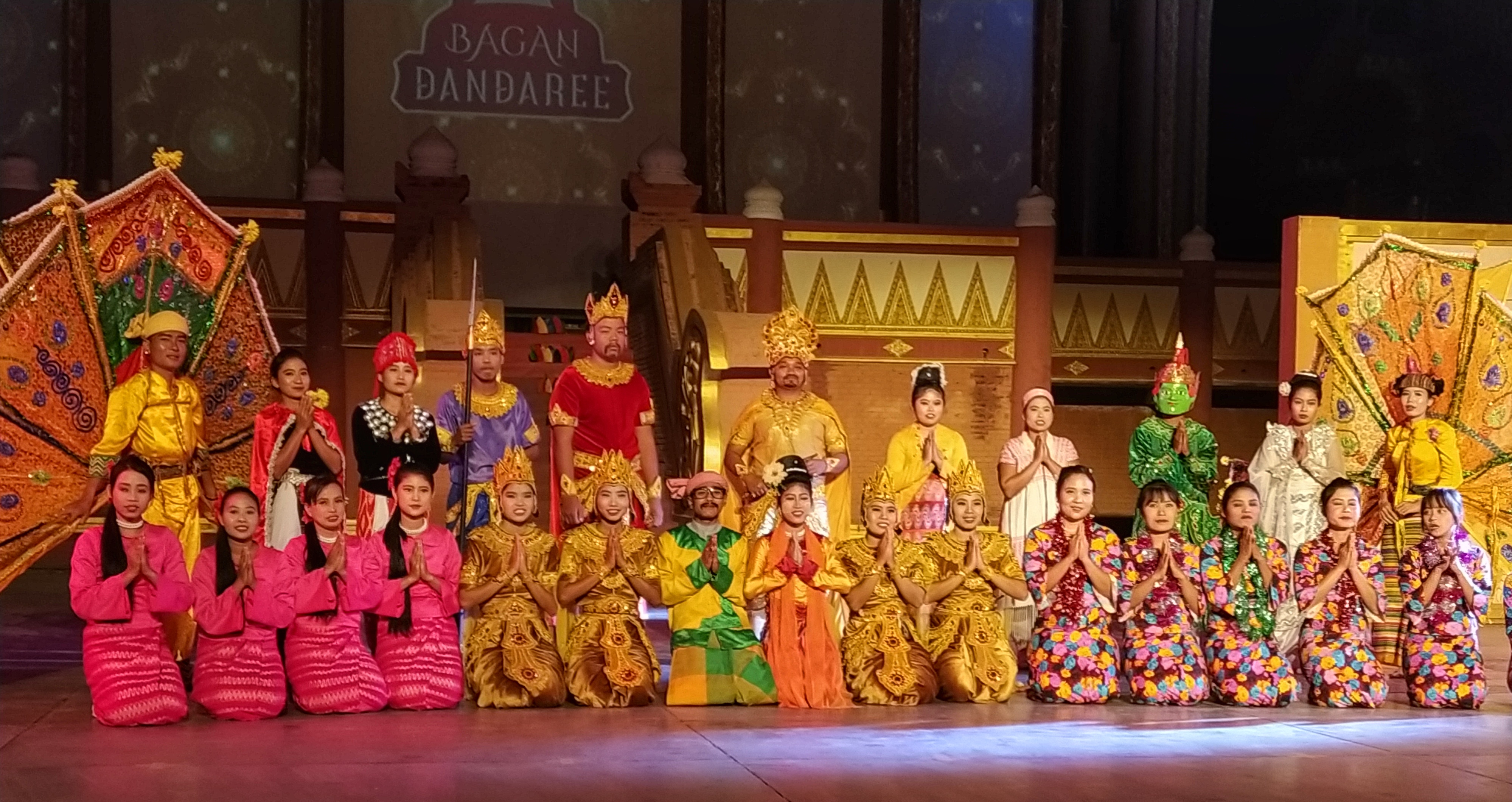 Das gestrige E-Bike fahren hat uns so viel Spaß gemacht, dass wir das heute noch einmal wiederholen mussten. Es war allerdings schon früher Nachmittag, bis wir loskamen. Wir fuhren zum nahegelegenen Watch-Tower, einem ca. 60 m hohen Turm, von dem wir einen ganz tollen Blick über das Pagodenfeld von Bagan bekamen. Die Aussicht war der aus dem Ballon nicht unähnlich aber natürlich ziemlich stationär. Die Tickets für den Turm waren bei unserer Ballontour bereits dabei. Verwunderlich, dass hierfür keine Werbung gemacht wurde. Auch den Sonnenuntergang genossen wir dort oben, bei einem leckeren Cocktail versteht sich. Nachdem es dunkel geworden war fuhren wir zum Bagan Palace, wo es jeden Abend eine Aufführung geben sollte. Die fand auch statt und zwar fast exklusiv für uns. Außer uns waren noch zwei weitere Paare im Publikum. In einer kleinen Pause wurden wir zusätzlich mit Wasser und Chips versorgt. Die Aufführung war sehr gut und wir haben die tollen Kleider und Tänze sehr genossen. Auch diese Tickets waren im Ballonflug enthalten und wir hätten uns doch etwas mehr Werbung und damit mehr Zuschauer, vor allem im Interesse der vielen Darsteller gewünscht. Gegen 21:00 Uhr waren wir wieder zurück, wo der Motorradverleiher wie abgesprochen auf uns wartete. Normalerweise schließt er seinen Laden bereits um 19:00 Uhr. Unser Stammlokal hatte bereits geschlossen und so mussten wir mit einem anderen Restaurant vorlieb nehmen. Geschmeckt hat es trotzdem.