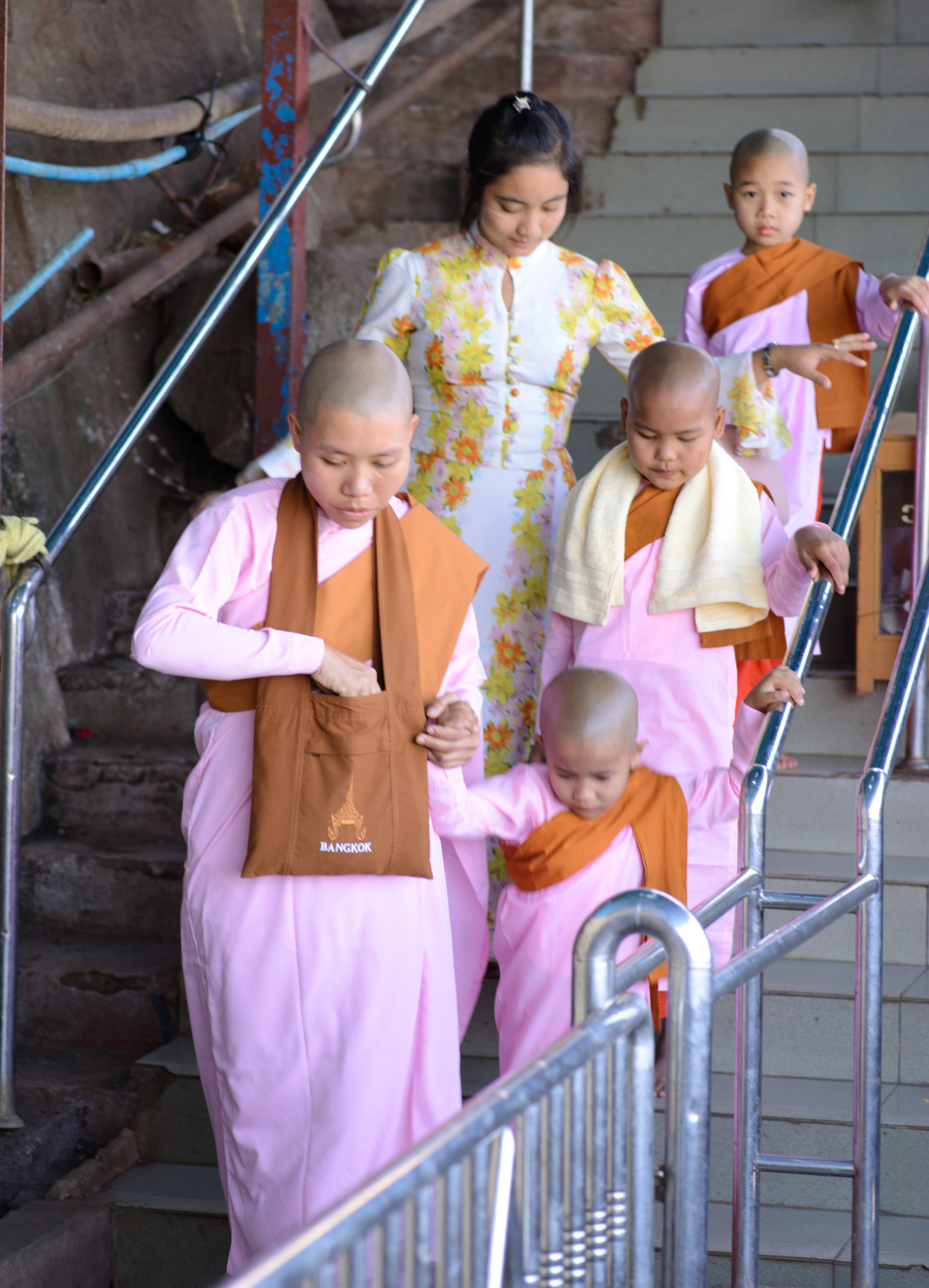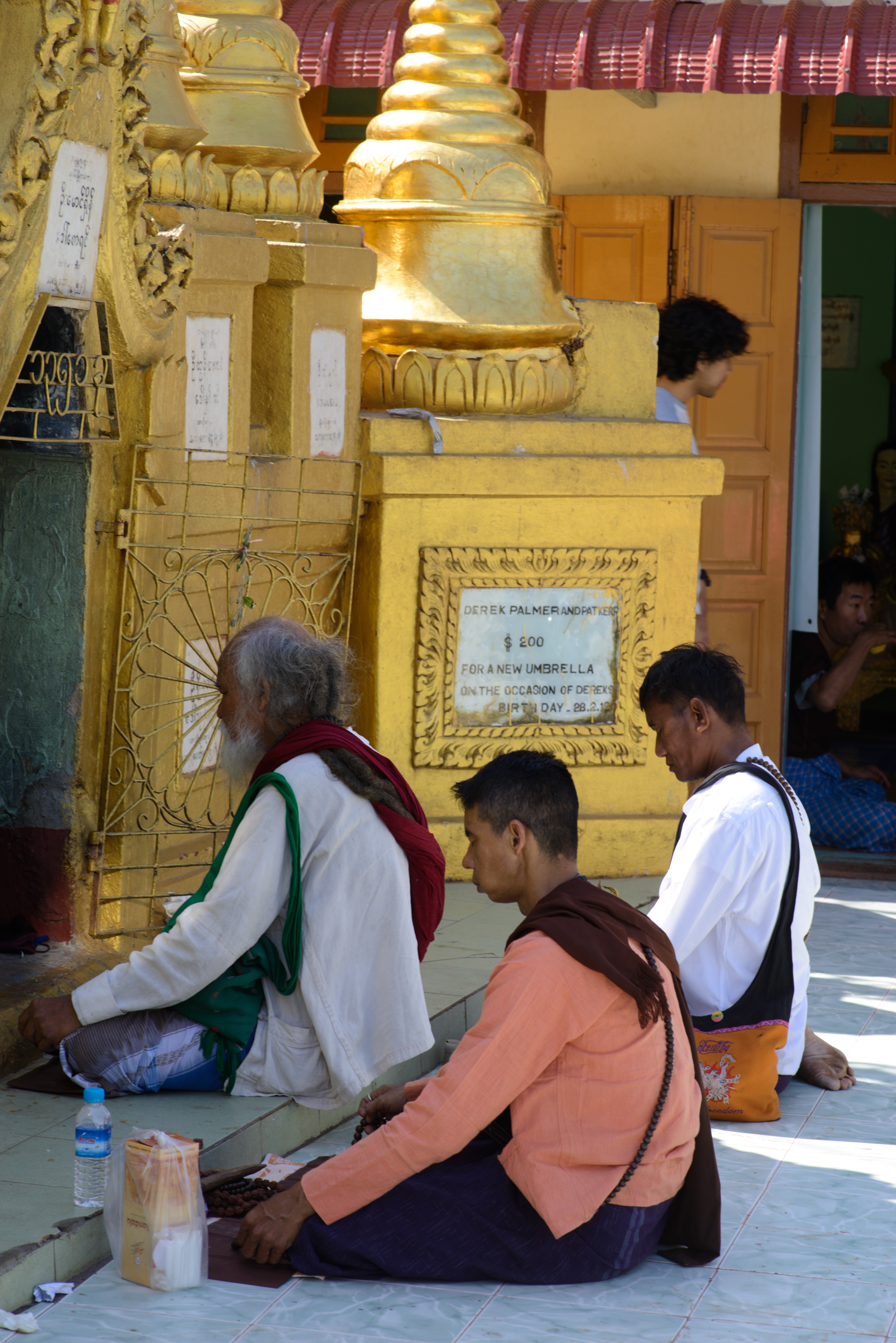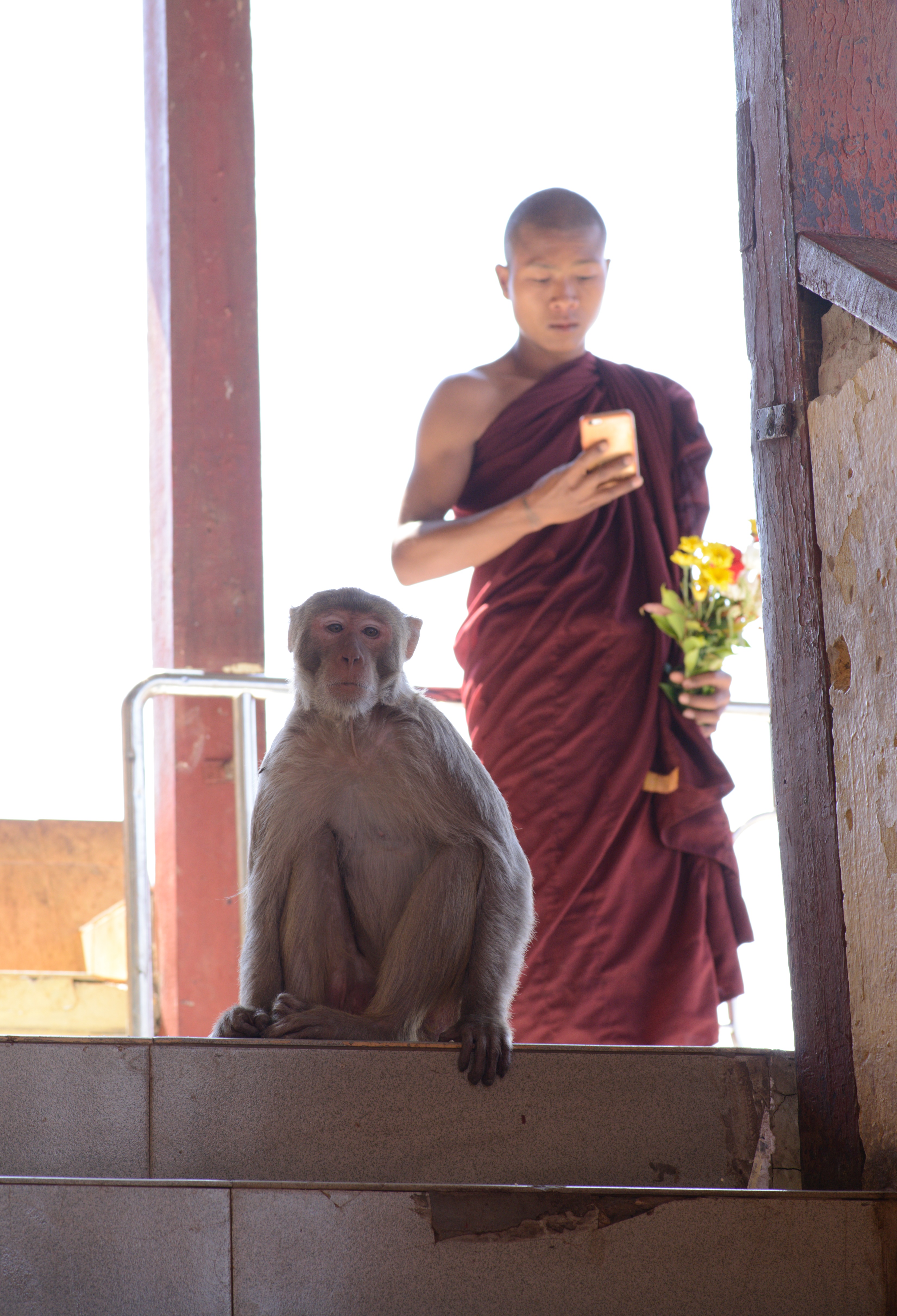 Einer der berühmtesten Tempel in Myanmar ist Mount Popa. Und das Gute: Er ist nur 60 km von Bagan entfernt. Wir fuhren gemütlich mit dem Tuk-Tuk dorthin. Unterwegs bekamen wir viel von der Landschaft zu sehen. Die üblichen Stopps an touristischen Stellen, z. B. dort wo Wein aus Palmfrüchten hergestellt und verkauft wird, ließen wir aus. Stattdessen genossen wir den Blick in die Landschaft. Auf den letzten 20 km bekamen wir aber auch eine der Schattenseiten von Myanmar zu Gesicht: Über mindestens 10 km standen trotz der Hitze ca. alle 100 bis 200 m Bettler und jeder versuchte auf sich aufmerksam zu machen. Die meisten waren sehr alt aber es waren auch jüngere darunter und auch ein paar Kinder. Auf der Rückfahrt hielt ein Wagen vor uns an und wir sahen die Menschen von rechts und von links in der Aussicht auf ein kleines Almosen zum Auto laufen. Auch wir hielten einmal an, schenkten einem Jungen zwei Mützen, die er danach stolz in Händen hielt und auch ein paar Kyats. Der herbeieilende Vater des Jungen bedankte sich und beide waren sehr angenehm zurückhaltend aber auch ein wenig neugierig und interessiert an unserem fremdländischen Antlitz.