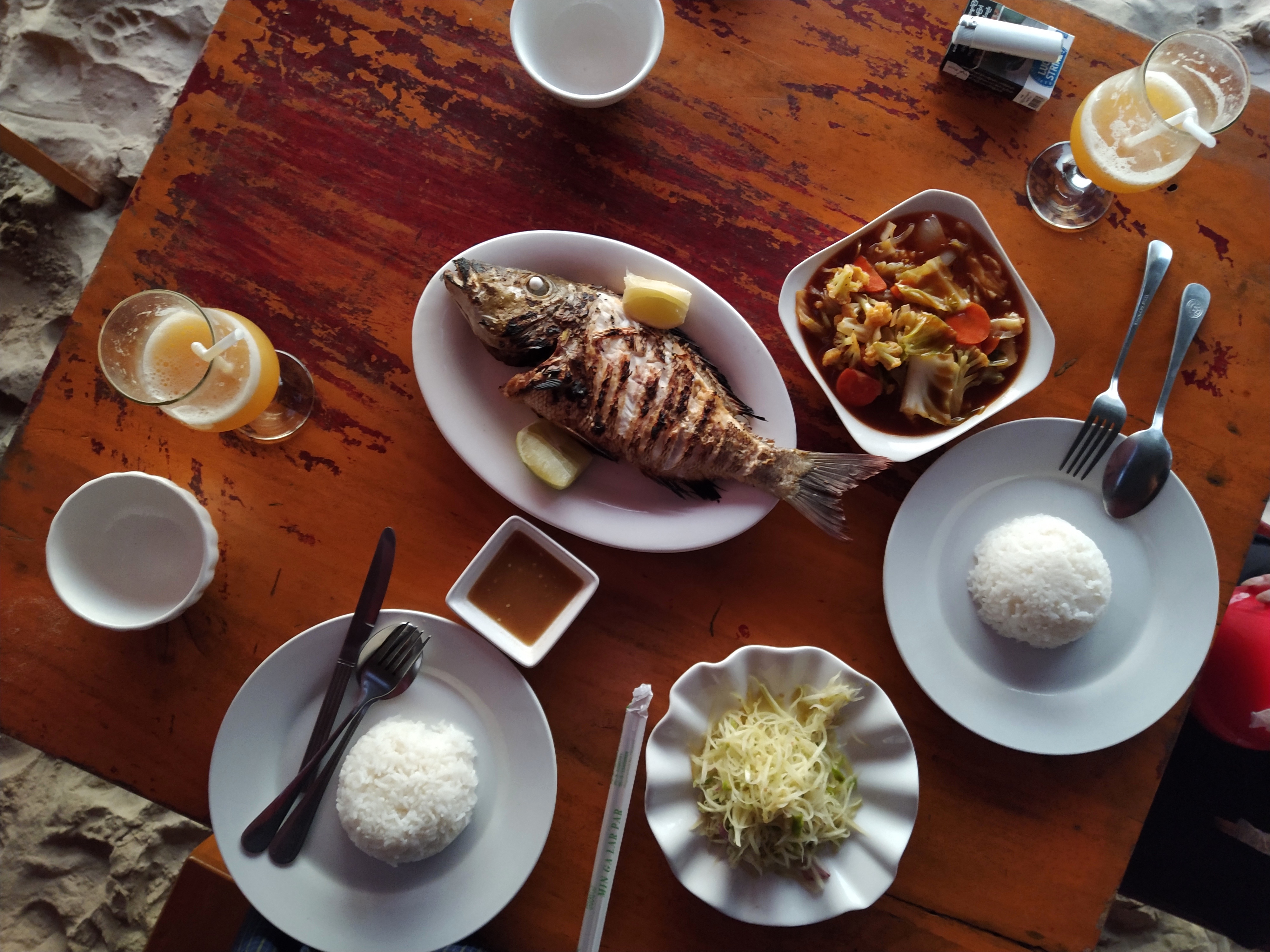 Für ein paar Tage entspannten wir uns am Ngapali Beach. Der knapp einstündige Flug von Heho nach Thandwe war pünktlich und wir waren bereits am frühen Nachmittag am Strand. Es war schön, mal wieder einfach nur am Strand zu liegen und sich hin und wieder im Meer abkühlen zu können. Aber auch die Spaziergänge über den Strand und durch das kleine Fischerdorf waren sehr schön. Am ersten Abend – Aneta’s Geburtstag - aßen wir direkt am Strand und genossen den Sonnenuntergang. Natürlich durfte auch eine Massage am Strand nicht fehlen. Kurz: Wir ließen es uns richtig gutgehen.