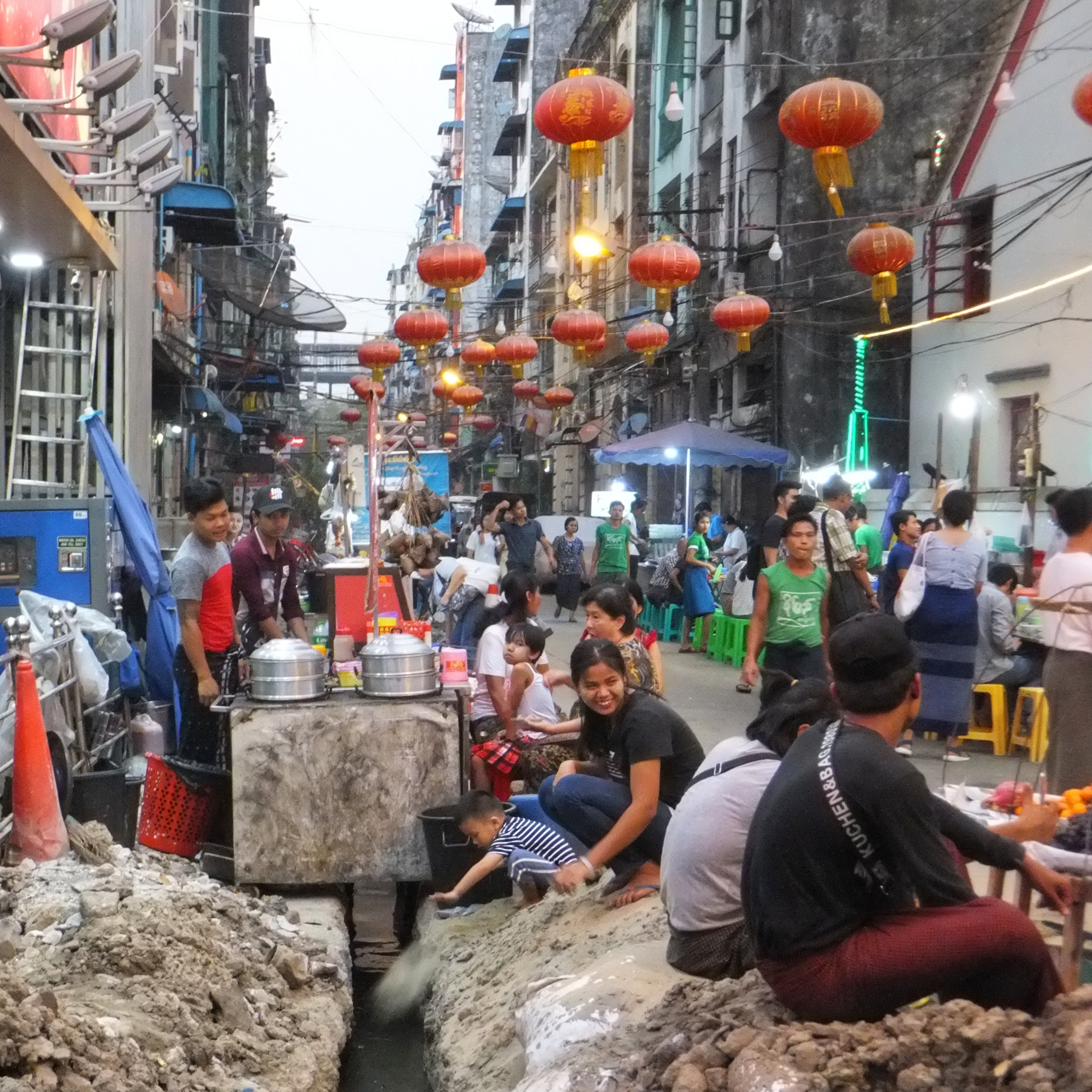 Gestern haben wir einen kurzen Ausflug nach Chinatown gemacht. Aber außer ein paar Straßen in denen es – zugegebenermaßen gut aussende – Restaurants gab, fehlte es völlig an dem typischen Flair von Chinatown. Keine verzierten Häuser, nicht einmal ein Eingangstor. Lediglich Yangon-typische schmutzige Häuserfassaden. Wie froh waren wir doch, uns für unsere Unterkunft am Fluss entschieden zu haben.