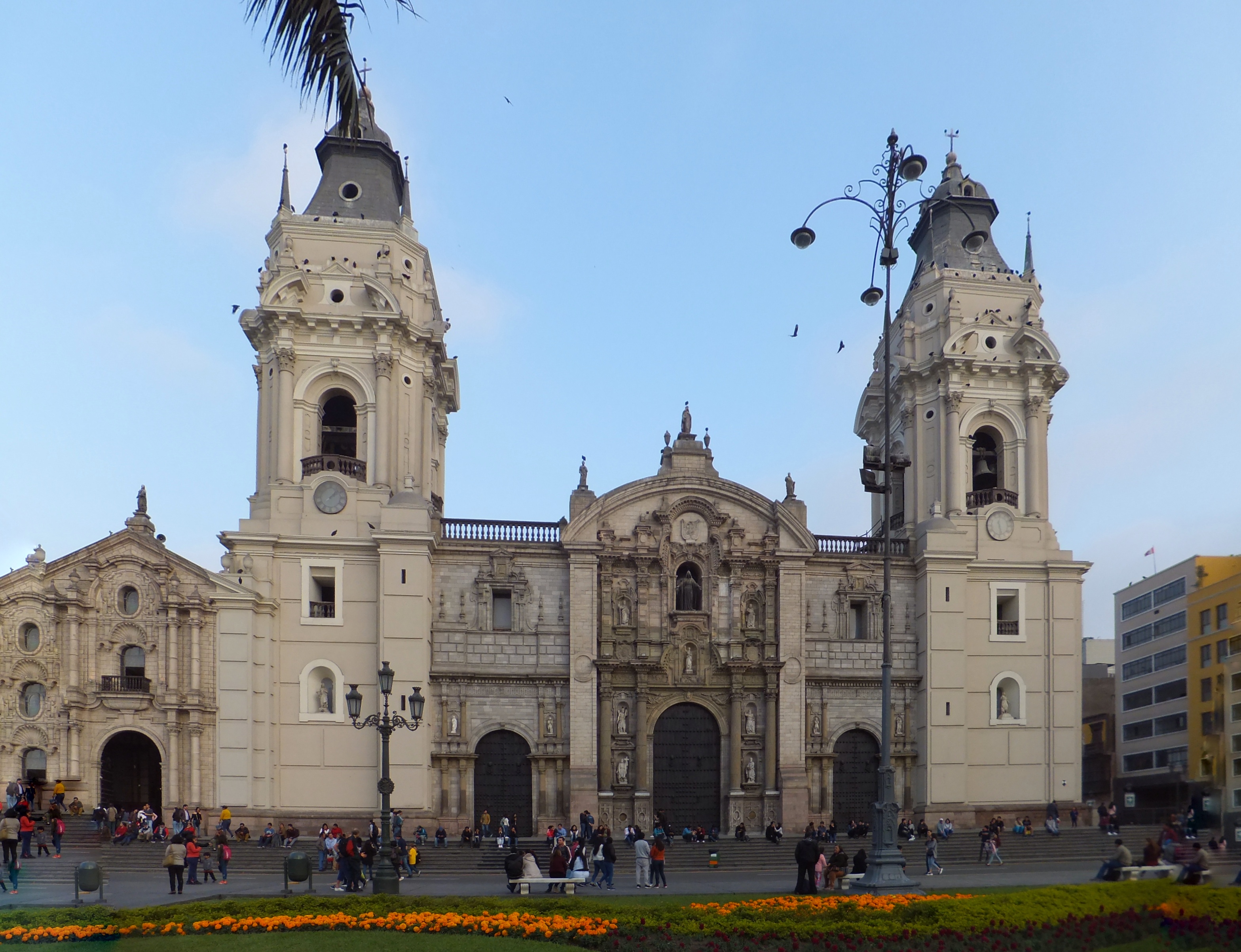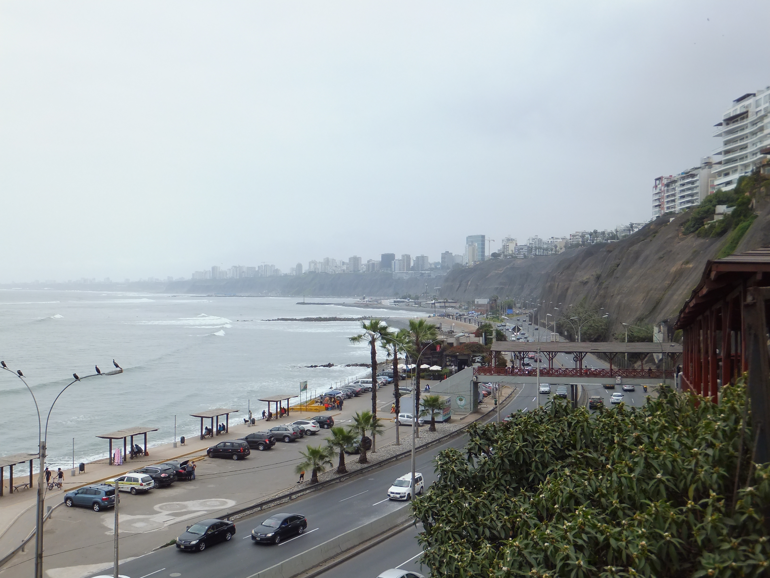 Die 12 1/2 Stunden Flug gestern vergingen überraschend schnell. Ein Taxifahrer erwartete uns bereits am Flughafen und brachte uns zu unserem Appartement. Nach einem kleinen Spaziergang und einem kleinen Abendessen sind wir ganz schnell eingeschlafen. Trotz 7 stündiger Zeitverschiebung haben wir relativ lange geschlafen. Nach einem stärkenden Cappuccino erkundeten wir die Stadt zu Fuß von Miraflores aus. Der Indio-Markt war sehr interessant und vor allem die Sachen aus weichem Baby Lama Pakka haben es uns angetan. Gekauft haben wir trotzdem nichts. Weiter ging es nach Barranca, dem Künstlerviertel. Besonders schön ist die Stadt hier nicht. Die Mehrzahl der Häuser sehen roh und grau aus. Die obere Etage scheint fast überall zu fehlen. Ähnlich wie in Ägypten ragen die Stahlstreben aus dem Beton, als würde jeden Moment weitergebaut werden, was aber natürlich in den nächsten 10 Jahren nicht passieren wird. Ob auch hier vorgesehen ist, dass der Nachwuchs in die nächste Etage ziehen soll? Das Künstlerviertel stellte sich denn auch zunächst genauso heruntergekommen dar. Nur im Bereich der Seufzerbrücke, die wir Luft anhaltend überquerten und uns dann etwas wünschten, waren etliche sehr schöne Graffitis zu bestaunen. Gar nicht schön, ist der Anblick auf den Strand. Entlang der Küste führt eine große stark befahrene Straße. Zu einer Seite ragt der Berg, auf dem Lima steht und auf der anderen Seite der Straße bleibt nur ein schmaler Streifen Strand übrig. Dazu kommt, dass die Stadt fast den ganzen Tag in Dunst eingehüllt ist. Der Himmel ist die meiste Zeit des Jahres grau. Auch dadurch wirkt alles recht düster. Wir fanden ein sehr schönes Restaurant, wo wir ein leckeres spätes Mittagessen einnahmen. Vom Nachbartisch wurde uns eine roh zubereitete Jakobsmuschel angeboten, die wir uns ebenfalls schmecken ließen. Nach dem Essen probierten wir Capify, einen Taxidienst aus. Völlig unkompliziert kam das Taxi bereits nach 2 Minuten und fuhr uns dann eine Stunde lang zum Place de Armas, einem zentralen Platz in der Altstadt von Lima. Hier ist die Stadt sehr viel schöner. Belebte Fußgängerzonen umsäumt von prächtigen Bauten, wie z.B. der Kathedrale von Lima, die eigentlich seit 13 Uhr geschlossen ist, aber für eine Hochzeit war ein Seitenflügel geöffnet, so dass wir auch hier einen Blick hineinwerfen konnten. Dann gingen wir zur Basilika San Francisco, einem Kloster wo wir eine Führung auf spanisch bekamen und uns auch die Katakomben mit ihren vielen Skeletten ansehen konnten. Zurück ging es dann auch wieder mit dem Taxi. Ein wenig schade, dass wir morgen schon wieder weiter müssen, gerne hätten wir uns die Altstadt noch etwas mehr angesehen.