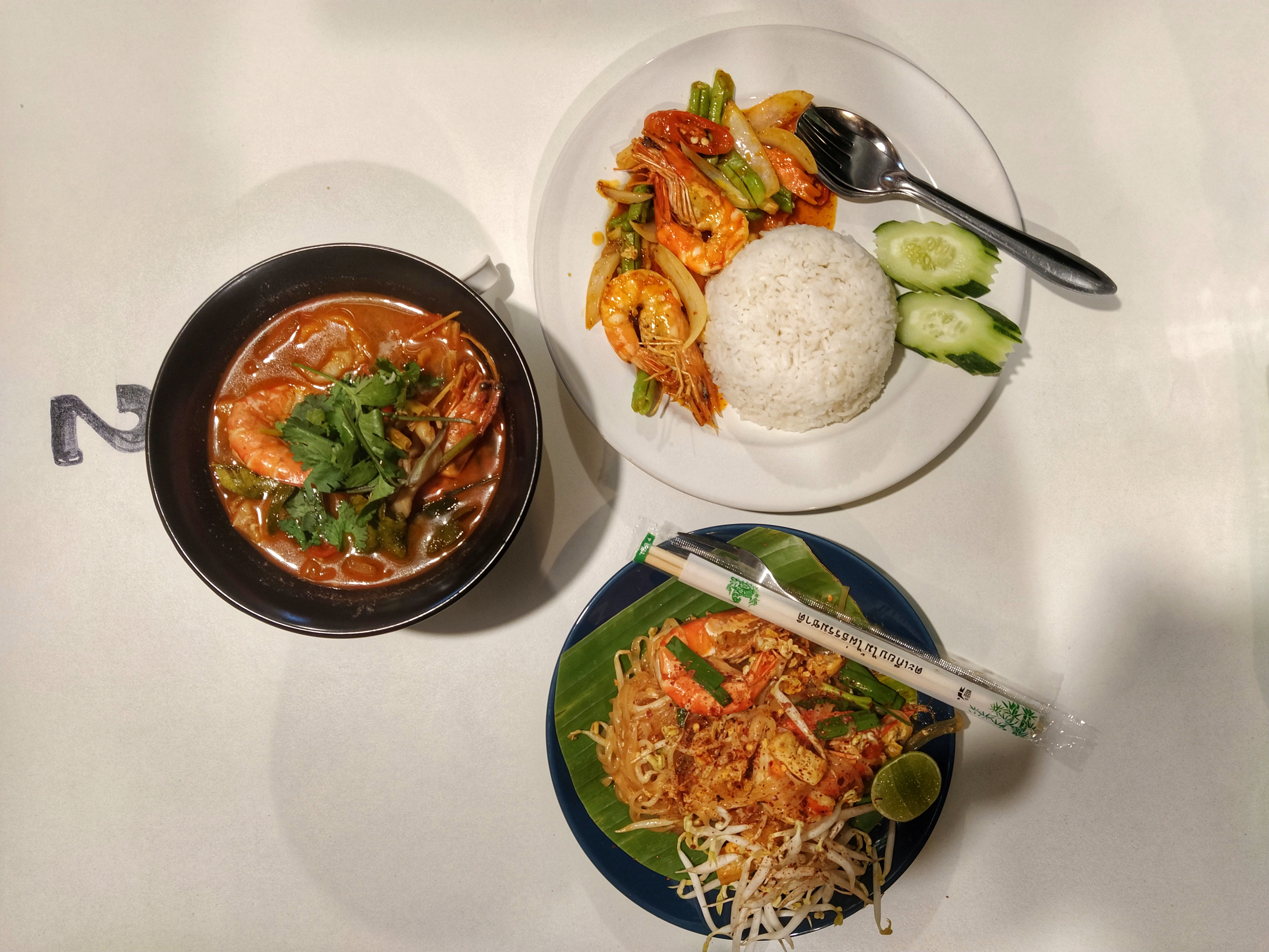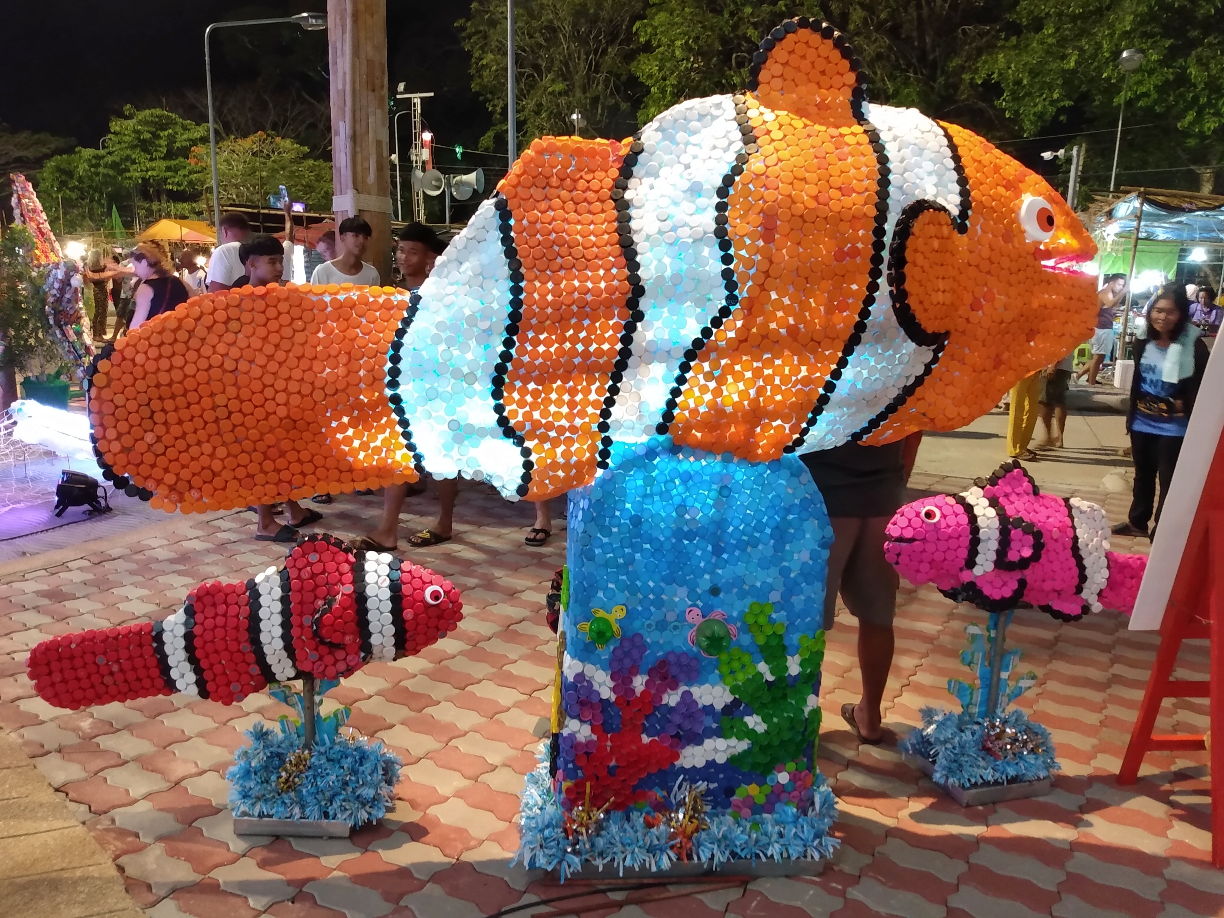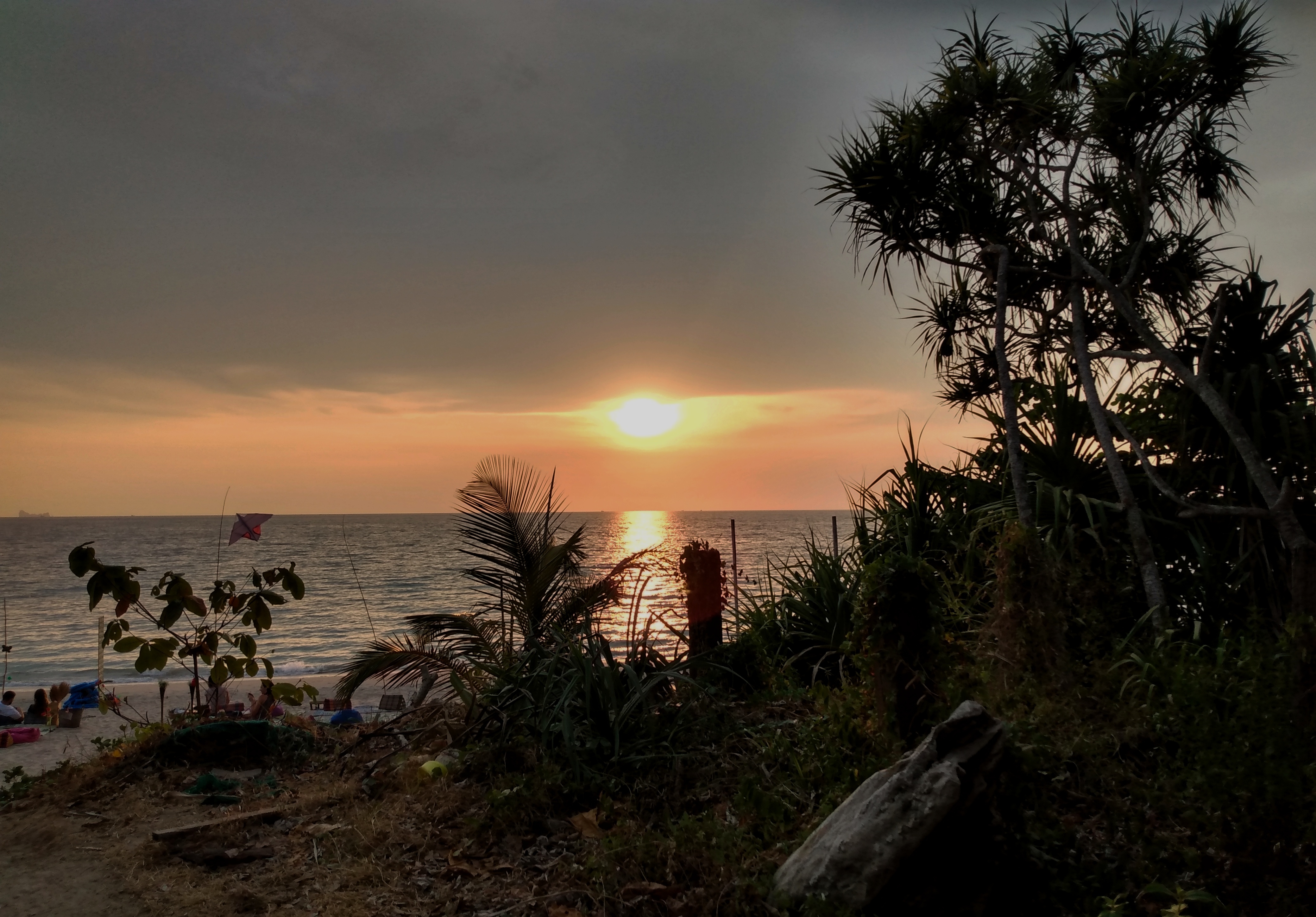 Wir hatten ursprünglich überlegt, mit dem öffentlichen Bus von Khao Lak nach Koh Lanta zu fahren. Da dies aber erstens über Phuket gegangen wäre, was die Fahrtzeit bis Krabi von 3 Stunden auf 6 Stunden verdoppelt hätte und man sich einem Bus bemerkbar hätte machen müssen, der eigentlich nicht in Khao Lak hält und zudem nur alle 4 Stunden fährt, haben wir uns entschlossen, die Fahrt in einem Minivan zu machen. Wir hatten kaum ein paar Minuten an unserer Rezeption gewartet, da bog er auch schon um die Ecke. Drei Stunden später waren wir in Krabi. Dort bekamen wir einen Aufkleber auf das T-Shirt und wurden in ein Sammeltaxi gesetzt, dass uns zum Pier für die Fähre nach Koh Lanta brachte. Die Fähre sollte um 11:30 Uhr losfahren und wir hatten noch 3 Minuten, die Aneta nutze, um noch einmal auf Toilette zu gehen. Der Weg zur Fähre war dann länger als wir dachten und auf halber Strecke gab es noch eine Temperaturkontrolle. Michaels Stirn war schnell gescannt. Aber bei Aneta leuchtete das Gerät plötzlich rot. Nach einer kleinen Wartezeit, in der sie sich vom Rennen kurz erholen sollte, wiederholte der Angestellte die Messung. Wieder rot. Und dann noch einmal. Der Kontrolleur meinte, dass er uns nicht durchlassen könne, aber es kann nützlich sein, die Stirn mit Wasser zu kühlen und siehe da, endlich zeigte das Gerät grün an und wir konnten zum Schiff, das glücklicherweise noch auf uns gewartet hatte. Die Überfahrt war entspannt aber auch recht warm, da es in der Kabine nur ein paar Lüfter gab. Auf Koh Lanta fuhren wir mit dem Taxi, das wir bereits auf der Fähre bezahlt hatten, zu unserem Hotel, wo wir unseren Bungalow am Strand bezogen. Wir freuten uns über fast leere Strände, an denen wir unsere Strandspaziergänge machten. Für zwei Tage mieteten wir uns einen Roller, um zum Laanta Lanta Festival in Old Town zu fahren. Am Eingang drängelten sich schon die Menschen, da es Sicherheits- und Gesundheitskontrollen gab. Die Polizisten schauten sehr streng und wir befürchteten schon nicht reinzukommen. Da wurde Michi vom Polizeichef auf seinen Longhi angesprochen und wir erzählten, dass wir aus Myanmar kommen. Er war sichtlich erfreut darüber, da seine Familie aus Myanmar käme. Wir wurden sodann schnell durchgewunken und konnten passieren. Es war wohl das erste Mal, dass wir einen thailändischen Polizisten lächeln gesehen haben. Im abgeriegelten Teil gab es viele Stände, an denen thailändische Spezialitäten geboten wurden aber auch Informationen über unterschiedliche Kulturen in Thailand sowie zahlreiche Aufführungen. Wir genossen das bunte Treiben und ließen uns das Essen schmecken. An einem Abend gab es ein kurzes Gewitter und wir beobachteten von unserem Bungalow aus die phantastischen hellen Blitze über dem Meer. Zum Abendessen gingen wir meistens zu unserer Mama, einer kleinen Straßenküche, wo das Essen einfach wunderbar schmeckte.