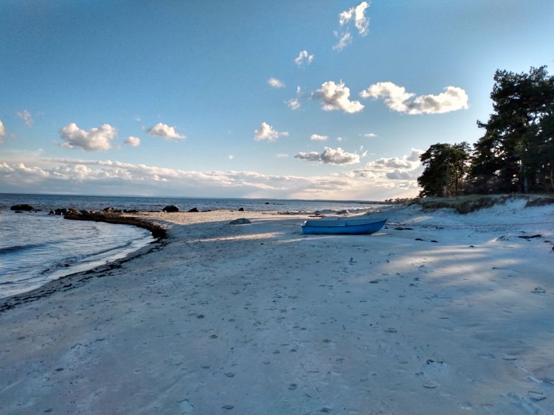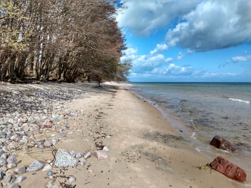 Nach einer wunderbar ruhigen Nacht und einem wie immer leckeren Frühstück machten wir uns auf zu unserem ersten Tagesziel dem Stenshuvuds Nationalpark. Hier wanderten wir durch die hügelige Dünenlandschaft, den langen einsamen Sandstrand und auf einen kleinen Berg von dem aus wir einen weiten Blick über die Bucht bekamen. Nach einer kleinen Stärkung fuhren wir in den Ort Kivik, wo es ein 3500 Jahre altes Königsgrab aus der Bronzezeit zu besichtigen gibt. Leider konnten wir es nur von außen sehen, da die Saison erst am 1. Mai beginnt. So war es nicht ganz so spektakulär. Abseits unseres Parkplatzes war jedoch ein großes Feld mit Bärlauch, wo wir uns einen großen Strauß gesammelt und anschließend zum Trocknen aufgehängt haben. Danach fuhren wir zum Strand Haväng, den wir ebenfalls zu Fuß erkundeten und Steine ins Meer warfen. Hier haben wir unseren zweiten Versuch mit der Drohne gemacht, was auch schon sehr viel besser funktionierte. Man übt sich halt. Für die Übernachtung fuhren wir nach Åhus. Auf einem Waldparkplatz am Strand waren wir wieder einmal völlig alleine. So wie wir es mögen.