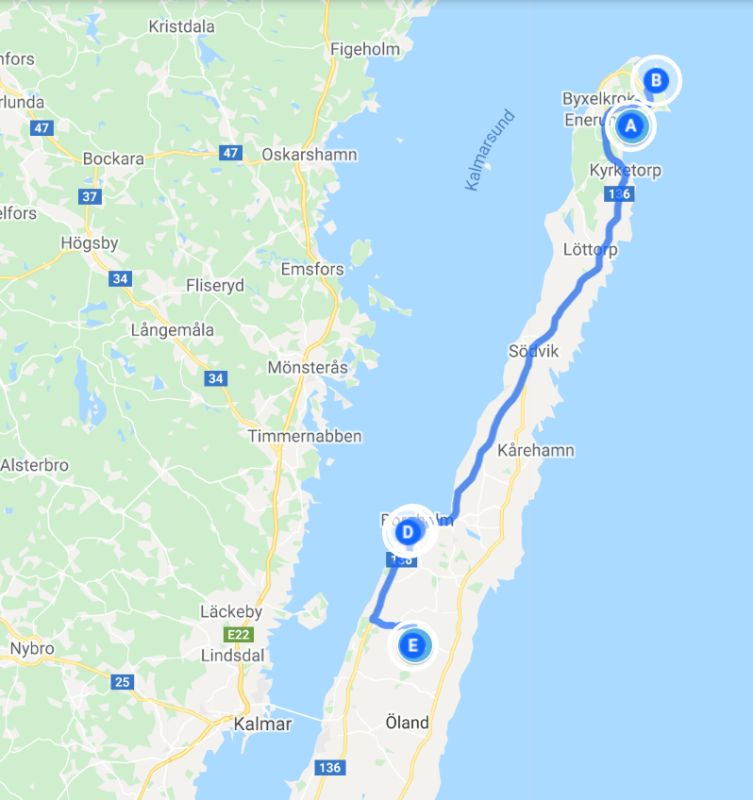 Wir haben gehört, dass es im Zauberwald auf Öland Trolle geben soll. Also fuhren wir hin, und schauten uns auf einem ca. 5 km langen Spaziergang durch den Trollkoogstiegen Nationalpark gründlich um. Gefunden haben wir neben einem alten Schiffswrack, knorrigen verbogenen Kiefern, Gräbern aus der Eisenzeit nur eine 900 Jahre alte Trolleiche. Ob diese wohl gemeint war? Es war kalt heute. Sehr kalt. Wir fuhren nach Borgholm zurück, wo wir gestern schon durchgefahren sind. Nach einem Halt bei einem Supermarkt, um ein paar Downloads zu machen fuhren wir zur Burgruine von Borgholm. Es war schon sehr ungemütlich: kalt und windig. Und so hielten wir es kurz. Genauso wie in dem nahegelegene Park der Sommerresidenz des schwedischen Königspaars Sommila. Wir entschlossen uns noch eine Nacht länger auf der Insel zu bleiben und stellten unser Wohnmobil in die Nähe einer weiteren sehr viel älteren Burgruine, der Burg Ismantorp. Ca. 350 m von unserem Parkplatz entfernt war dies ein schönes Ziel für unsere Drohne und die Bilder sind auch schon recht schön geworden. Erstaunlich wie anders die Landschaft wirkt, wenn man sie von oben betrachtet.