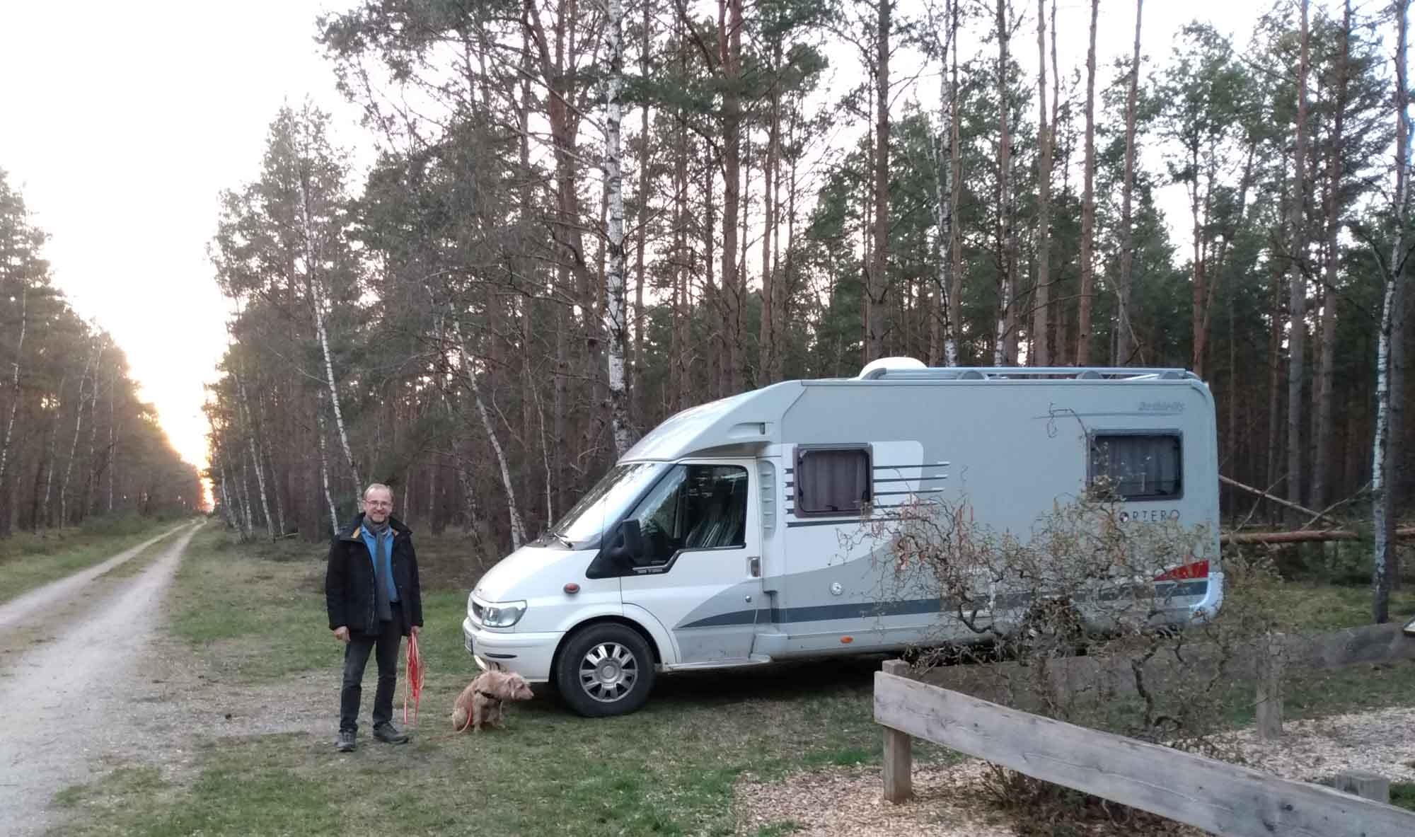 ... Na ja, zumindest war das der Plan. In der Praxis brauchten wir dann doch noch bis zum Nachmittag, bis wirklich alles fertig war. Aber um 15:10 Uhr ging es tatsächlich los. Bei strahlendem Sonnenschein führen wir über Bergedorf, Geesthacht und Lüneburg zunächst nach Uelzen, wo wir unseren Gastank voll machten. Kurz danach steuerten wir unseren ersten Übernachtungsplatz an, der jedoch durch niegelnagelneue rot-weiß lackierte Pfähle abgesperrt war. Hier haben sich wohl in letzter Zeit zu viele ungebetene Gäste daneben benommen. Schade eigentlich, aber wir haben bereits viel zu häufig verdreckte Plätze angefunden und können es gut verstehen, wenn sich Anwohner davon gestört fühlen. Dumm nur, dass so alle darunter leiden müssen, weil sich einige wenige Zeitgenossen nicht zu benehmen wissen. Auf der Weiterfahrt entdeckten wir dann jedoch zufällig einen Platz mitten im Wald. Ein Hinweisschild auf einen Gedenkstein für einen Waldbrand, der 1975 hier stattgefunden hat. Eigentlich wollten wir hier nur einen kleinen Spaziergang machen. Aber es war so wunderbar mucksmäuschenstill, wie wir es schon lange nicht mehr gehabt haben. Also entschlossen wir uns, gleich hier zu bleiben. Ein Abendbrot später ging es auch schon ins Bett. Der Wecker (das Telefon) hatte uns heute morgen bereits um kurz nach 7 Uhr geweckt. So machten wir es uns schön gemütlich und freuten uns auf eine ruhige Nacht.